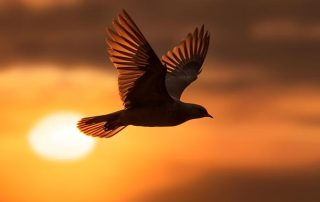 A bird that is not imprisoned in a coop, that can fly in the blue sky ...